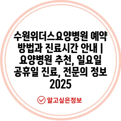 ✅ 수원위더스요양병원의 예약 방법을 지금 바로 알아보세요.