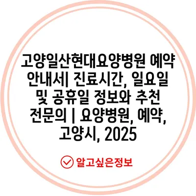 ✅ 고양일산현대요양병원의 예약 및 진료 시간을 쉽게 확인해보세요!