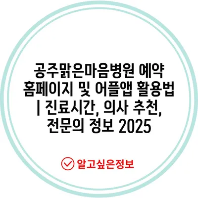 ✅ 공주맑은마음병원 진료시간과 예약 방법을 지금 바로 알아보세요!