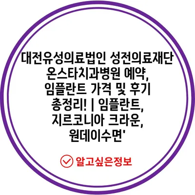 대전유성의료법인 성전의료재단 온스타치과병원 예약, 임플란트 가격 및 후기 총정리! | 임플란트, 지르코니아 크라운, 원데이수면’ 에 대해 자주 묻는 질문 TOP 5