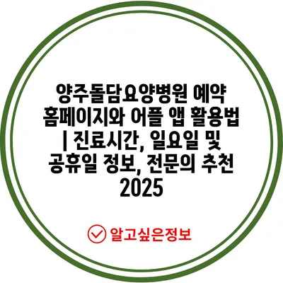 양주돌담요양병원 예약 홈페이지와 어플 앱 활용법 | 진료시간, 일요일 및 공휴일 정보, 전연락 추천 2025에 대해 알아보겠습니다.