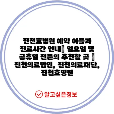 진천효병원 예약 어플과 진료시간 공지| 일요일 및 공휴일 전연락 추천할 곳 | 진천의료법인, 진천의료재단, 진천효병원에 대해 자주 묻는 질문 TOP 5