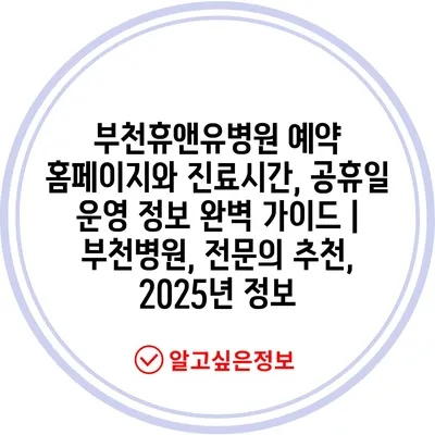 부천휴앤유병원 예약 홈페이지와 진료시간, 공휴일 운영 정보 완벽 설명서 | 부천병원, 전연락 추천, 2025년 내용을 소개합니다.