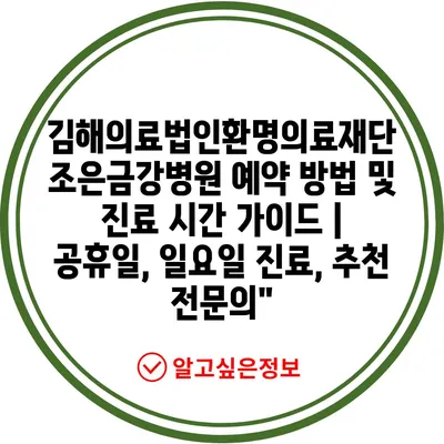 ✅ 김해의료법인환명의료재단 조은금강병원의 진료 예약 방법을 지금 확인하세요!