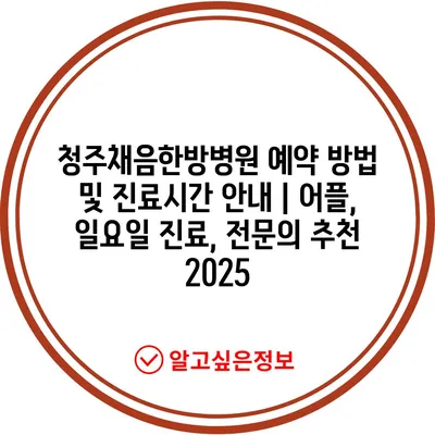 청주채음한방병원 예약 방법 및 진료시간 공지 | 어플, 일요일 진료, 전연락 추천 2025에 대해 알아보겠습니다.