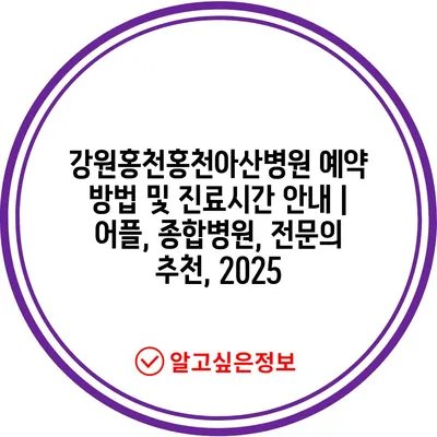 강원홍천홍천아산병원 예약 방법 및 진료시간 공지 | 어플, 종합병원, 전연락 추천, 2025 에 대해 자주 묻는 질문 TOP 5