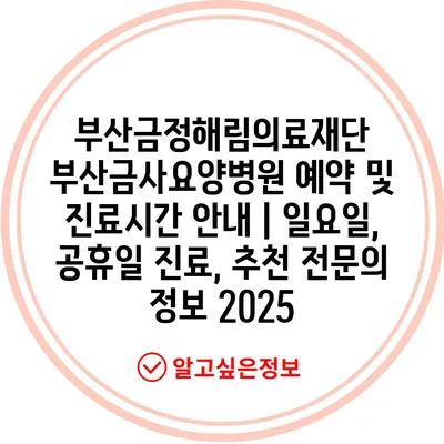 부산금정해림의료재단 부산금사요양병원 예약 및 진료시간 공지 | 일요일, 공휴일 진료, 추천 전연락 정보 2025 에 대해 자주 묻는 질문 TOP 5