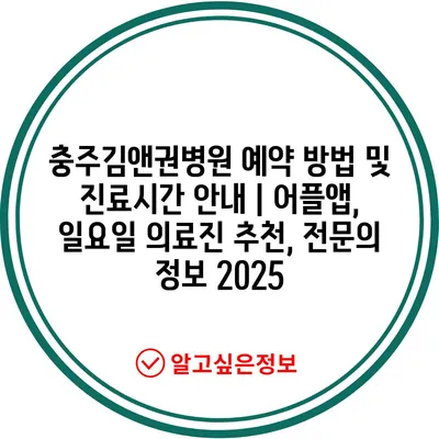 ✅ 충주김앤권병원 예약과 진료시간을 쉽게 확인하세요!