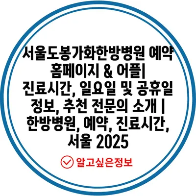 ✅ 서울도봉가화한방병원의 진료시간과 예약 방법을 알아보세요.