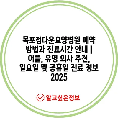 목포정다운요양병원 예약 방법과 진료시간 공지 | 어플, 유명 의사 추천, 일요일 및 공휴일 진료 정보 2025에 대해 공지제공합니다.
