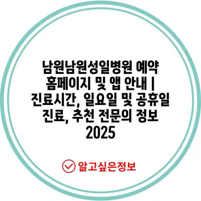 남원남원성일병원 예약 홈페이지 및 앱 공지 | 진료시간, 일요일 및 공휴일 진료, 추천 전연락 정보 2025에 대해 알아보겠습니다.