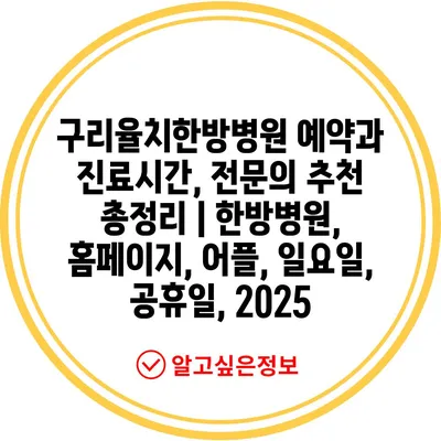구리율치한방병원 예약과 진료시간, 전연락 추천 총정리 | 한방병원, 홈페이지, 어플, 일요일, 공휴일, 2025