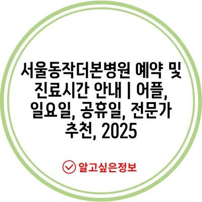 서울동작더본병원 예약 및 진료시간 공지 | 어플, 일요일, 공휴일, 전문가 추천, 2025 에 대해 자주 묻는 질문 TOP 5