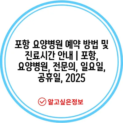 포항 요양병원 예약 방법 및 진료시간 공지 | 포항, 요양병원, 전연락, 일요일, 공휴일, 2025 에 대해 자주 묻는 질문 TOP 5