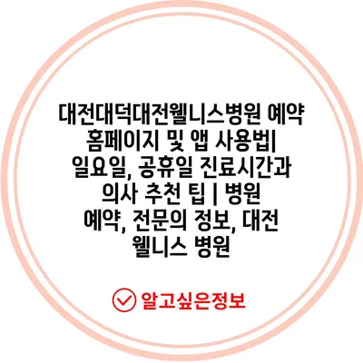 대전대덕대전웰니스병원 예약 홈페이지 및 앱 사용법| 일요일, 공휴일 진료시간과 의사 추천 팁 | 병원 예약, 전연락 정보, 대전 웰니스 병원 에 대해 자주 묻는 질문 TOP 5