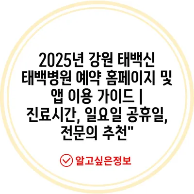 ✅ 태백병원 예약 방법과 진료 시간에 대해 알아보세요.