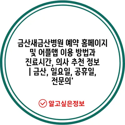 금산새금산병원 예약 방법을 자세히 알아보세요.