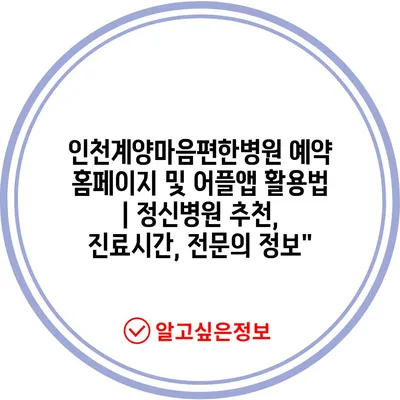 ✅ 인천계양마음편한병원의 예약 방법과 진료 정보를 자세히 알아보세요.