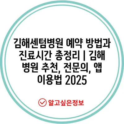 ✅ 김해센텀병원의 진료시간과 예약 방법을 자세히 알아보세요.
