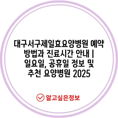 대구서구제일효요양병원 예약 방법과 진료시간 공지 | 일요일, 공휴일 정보 및 추천 요양병원 2025 에 대해 자주 묻는 질문 TOP 5