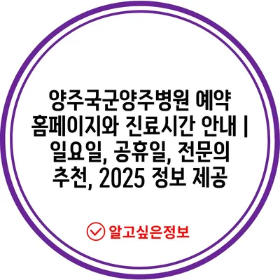 ✅ 양주국군양주병원의 진료시간과 예약 팁을 만나보세요.