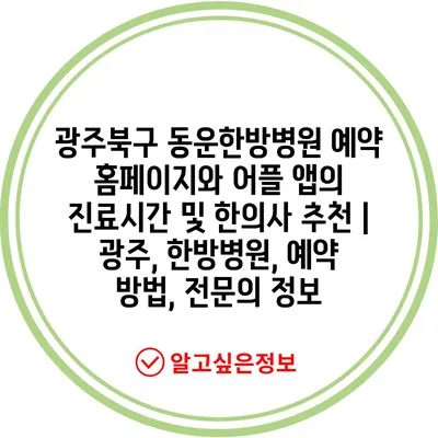 광주북구 동운한방병원 예약 홈페이지와 어플 앱의 진료시간 및 한의사 추천 | 광주, 한방병원, 예약 방법, 전연락 정보 에 대해 자주 묻는 질문 TOP 5