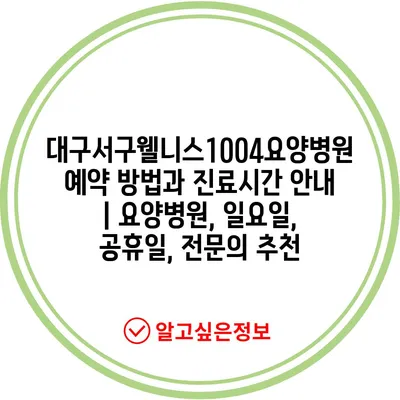 ✅ 대구서구웰니스1004요양병원의 예약 방법과 진료시간을 자세히 알아보세요.