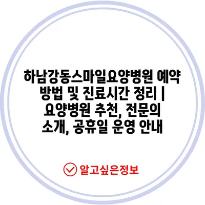 하남강동스마일요양병원 예약 방법 및 진료시간 정리 | 요양병원 추천, 전연락 소개, 공휴일 운영 공지 에 대해 자주 묻는 질문 TOP 5