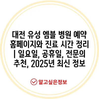 ✅ 대전 유성 엠블 병원의 예약 방법과 진료 시간을 알아보세요.