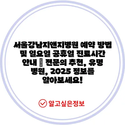 서울강남지앤지병원 예약 방법 및 일요일 공휴일 진료시간 공지 | 전연락 추천, 유명 병원, 2025 내용을 알아보세요! 에 대해 자주 묻는 질문 TOP 5