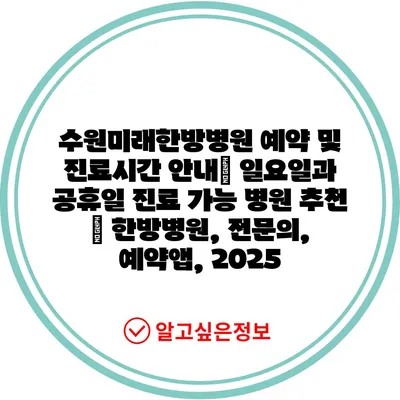 수원미래한방병원 예약 및 진료시간 공지| 일요일과 공휴일 진료 가능 병원 추천 | 한방병원, 전연락, 예약앱, 2025 에 대해 자주 묻는 질문 TOP 5