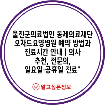 울진군의료법인 동제의료재단 오차드요양병원 예약 방법과 진료시간 공지 | 의사 추천, 전연락, 일요일·공휴일 진료에 대해 자주 묻는 질문 TOP 5