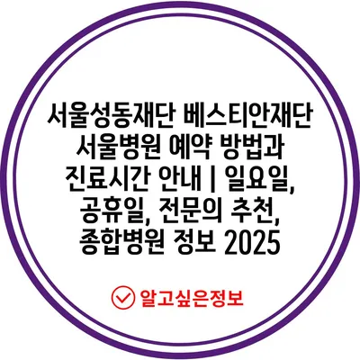 서울성동재단 베스티안재단 서울병원 예약 방법과 진료시간 공지 | 일요일, 공휴일, 전연락 추천, 종합병원 정보 2025 에 대해 자주 묻는 질문 TOP 5