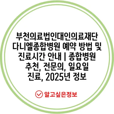 부천의료법인대인의료재단 다니엘종합병원 예약 방법 및 진료시간 안내 | 종합병원 추천, 전문의, 일요일 진료, 2025년 정보