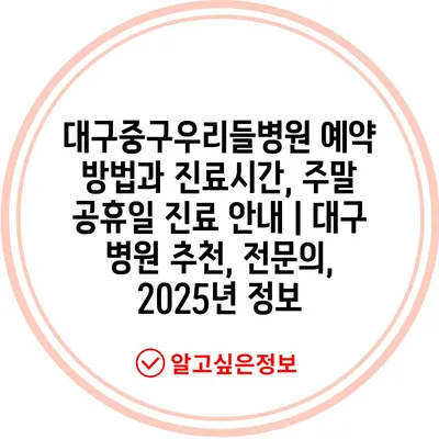 ✅ 대구중구우리들병원의 진료시간과 예약 방법을 쉽게 알아보세요.