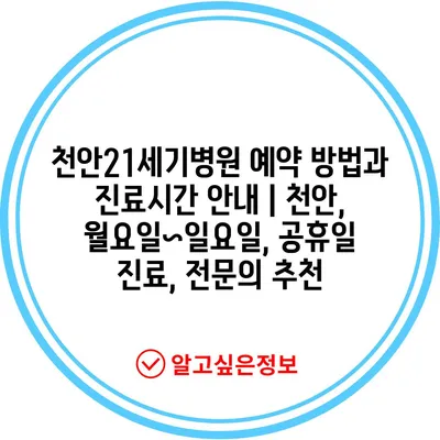 ✅ 천안21세기병원의 진료시간과 예약 비법을 알아보세요!