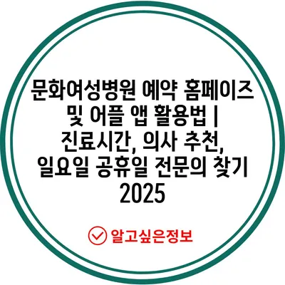 문화여성병원 예약 홈페이즈 및 어플 앱 활용법 | 진료시간, 의사 추천, 일요일 공휴일 전연락 찾기 2025에 대해 알아보겠습니다.