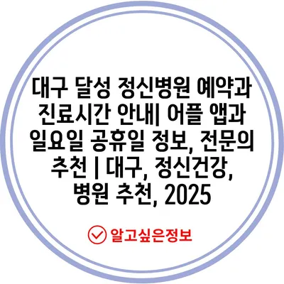 대구 달성 정신병원 예약과 진료시간 공지| 어플 앱과 일요일 공휴일 정보, 전연락 추천 | 대구, 정신건강, 병원 추천, 2025 에 대해 자주 묻는 질문 TOP 5