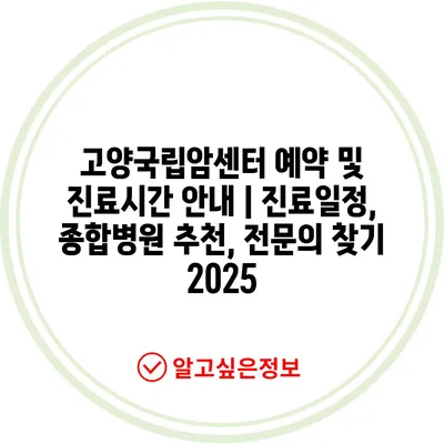 고양국립암센터 예약 및 진료시간 공지 | 진료일정, 종합병원 추천, 전연락 찾기 2025