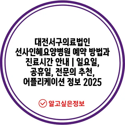 대전서구의료법인 선사인혜요양병원 예약 방법과 진료시간 공지 | 일요일, 공휴일, 전연락 추천, 어플리케이션 정보 2025