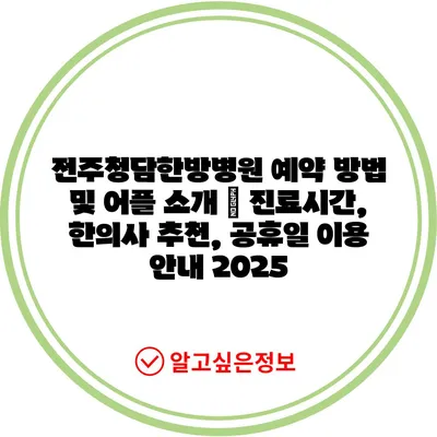 전주청담한방병원 예약 방법 및 어플 소개 | 진료시간, 한의사 추천, 공휴일 이용 공지 2025 에 대해 자주 묻는 질문 TOP 5