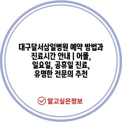 ✅ 대구달서삼일병원의 진료 시간과 예약 방법을 자세히 알아보세요.