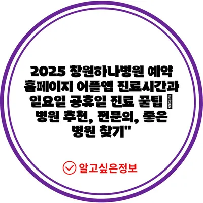 ✅ 2025 창원하나병원 예약 정보를 지금 바로 확인해 보세요!