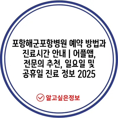 포항해군포항병원 예약 방법과 진료시간 안내 | 어플앱, 전문의 추천, 일요일 및 공휴일 진료 정보 2025