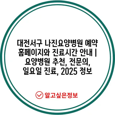 대전서구 나진요양병원 예약 홈페이지와 진료시간 안내 | 요양병원 추천, 전문의, 일요일 진료, 2025 정보