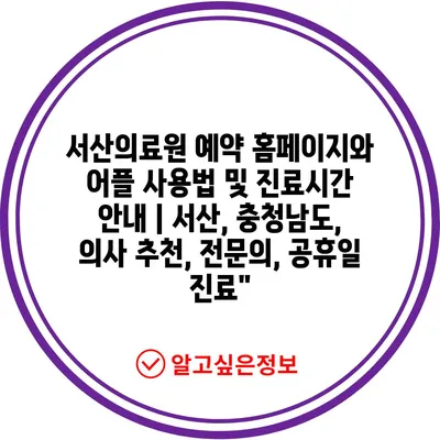 서산의료원의 진료시간과 예약 방법에 대해 알아보세요!