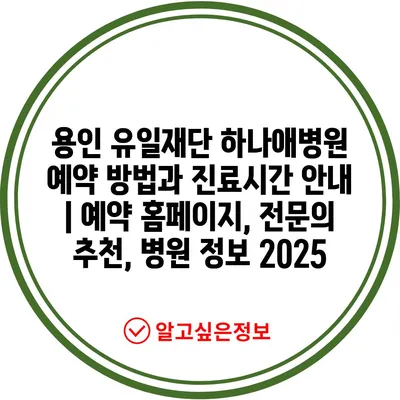 ✅ 용인 유일재단 하나애병원 예약 방법과 진료시간을 자세히 알아보세요.