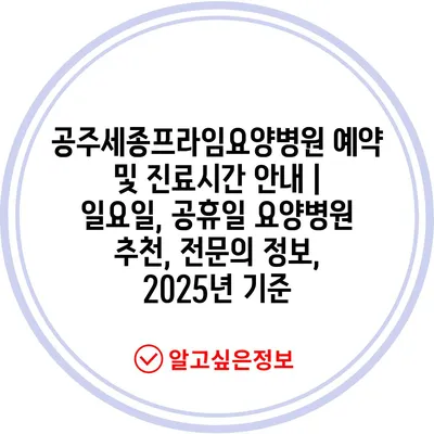 공주세종프라임요양병원 예약 및 진료시간 공지 | 일요일, 공휴일 요양병원 추천, 전연락 정보, 2025년 기준 에 대해 자주 묻는 질문 TOP 5