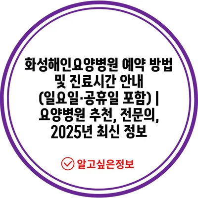 화성해인요양병원 예약 방법 및 진료시간 공지 (일요일·공휴일 포함) | 요양병원 추천, 전연락, 2025년 최신 정보