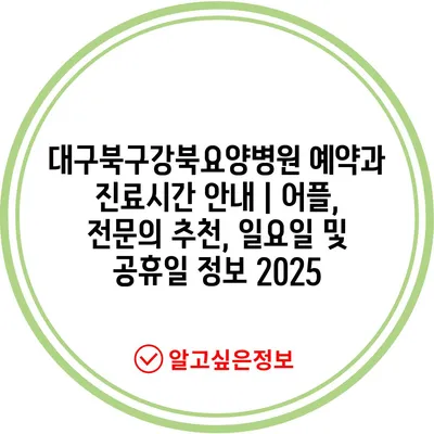 대구북구강북요양병원 예약과 진료시간 공지 | 어플, 전연락 추천, 일요일 및 공휴일 정보 2025
